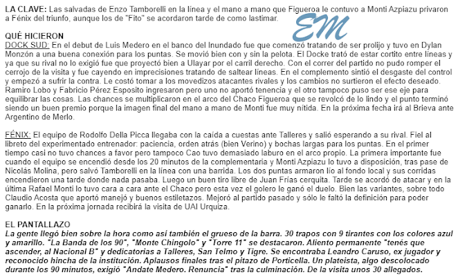 | DEFENSORES DE BELGRANO 1 49' Latriglia | DOCK SUD 3 62' y 78' Drufuca 87' Núñez |